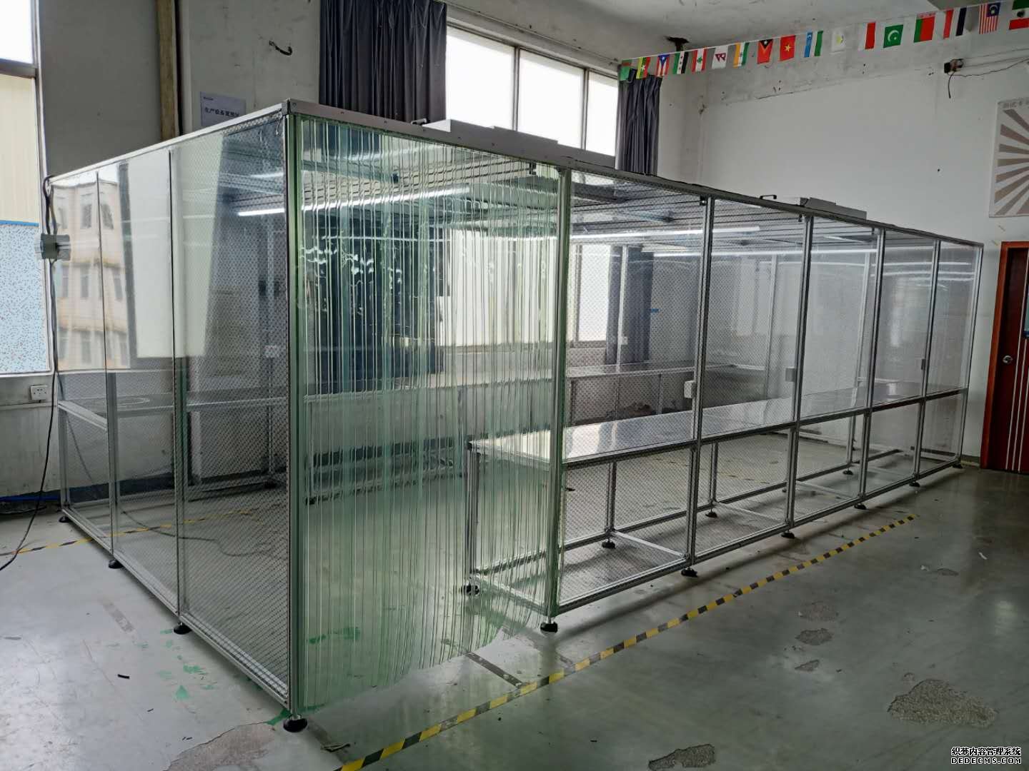 2、防靜電布簾:四周使用防靜電布簾(或亞克力板),防靜電效果好,透明度高,網(wǎng)格清晰,柔韌性好,不變形,不易老化。