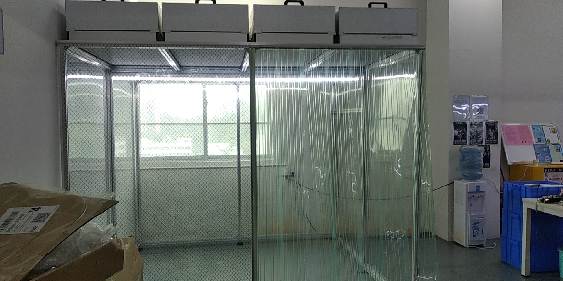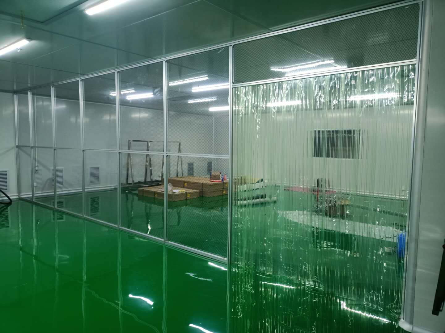 2.防靜電垂簾:四周圍用防靜電垂簾(或鋼化夾膠玻璃),防靜電效果非常的好、清晰度高、網(wǎng)格圖清楚、柔韌性好、不形變、不容易脆化;